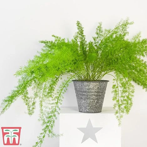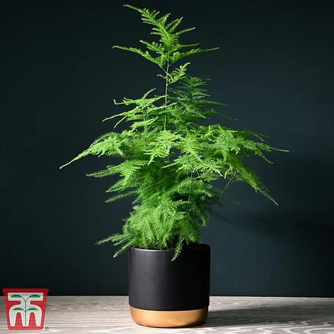 An attractive indoor fern with soft, feathery foliage, Asparagus setaceus sits beautifully within any contemporary or modern interior. The fresh green leaves are a welcome splash of natural colour which suits all styles. With its soft texture, this fern is a particularly lovely desk plant – the perfect living greenery for any well-lit home or office space. Height: 1m (39”). Spread: 45cm (18”).