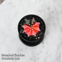Cactus Gymnocalycium mihanovichii f. variegata is quite a mouthful but it’s more easily remembered by its nickname of ‘Moon Cactus’ – a name it deserves due to its extraordinary, glowing colours. A native of desert habitats in Argentina, it lacks green chlorophyll, forming a luminous globe of orange, pink and yellow. The cactus is actually two cacti combined – it is grafted onto the thick base of another, chlorophyll-producing cactus, which provides it with the sustenance it needs to grow. These cacti remain small, reaching a maximum of 2 inches across. Height and spread: 5cm (2in).