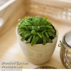 Drosera aliciae is an unusual carnivorous houseplant forming adorable rosettes of spoon-shaped leaves. The leaves are covered in striking bright red hairs, each bearing a droplet of sticky liquid at the tip, which gives the plant a sparkly appearance and traps insects such as midges and flies as well as pests such as gnats and whitefly that may be troubling your other houseplants. Very easy to grow, this gorgeous Princess Aliceโs sundew is a simple and highly decorative way to keep your home fly-free! In summer, a single stem arises from the centre of each rosette to bear a cluster of dark pink flowers. RHS AGM. Height: to 10cm (4in). Spread: to 20cm (8in).
