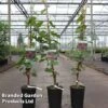 Kiwi arguta, also known as the Baby Kiwi or Hardy Kiwi, is ideal for growing in the UK. Fully hardy, they survive temperatures down to -15 to -10C. Hardy Kiwi produce masses of small, smooth, gooseberry-sized fruit that are sweeter than other Kiwis and don’t need to be peeled as they lack the hair-like covering of other Kiwi fruits. Established vines can produce up to 13kg of fruit. They form fast-growing, twining climbers with simple ovate leaves and fragrant, creamy-white flowers in summer and make attractive features for a trellis, pergola or wall in a sunny, south-facing position. The oval fruits are ready to harvest in September, packed with Vitamin C and delicious eaten straight from the vine. Height and spread: 3-4m (10-13ft).