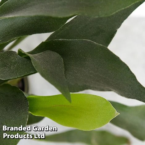Platycerium bifurcatum is a weird but wonderful fern with amazing antler-shaped leaves. This unique and fascinating houseplant makes a magnificent hanging or wall-mounted specimen for a bright spot out of direct sunlight. The fronds are flat, with mature fronds highly forked and able to grow to an impressive size. Growing on the branches of trees in the wild, common staghorn fern is best admired at eye level to appreciate it in all its spectacular glory! This RHS Award of Garden Merit winner is safe for children and pets. Height and spread: 90cm (35in).