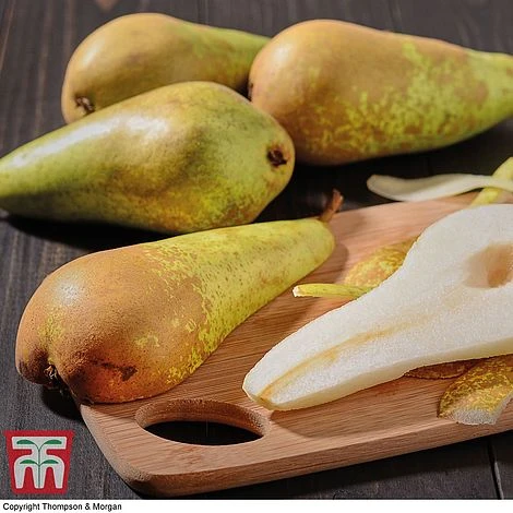 - Pear ‘Conference’ – The long bell shaped fruits with firm flesh can be eaten hard or fully ripe with a smooth juicy flavour. Trees crop late in the season from October to November, and the fruit will store until January. Rootstock: Quince A – Semi vigorous reaching a mature height of up to 3m (10′) to 4m (13′)