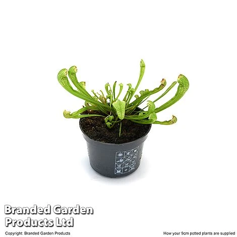An unusual Sarracenia species which produces both exotic pitchers and intriguing flowers. A cross between the White Pitcher and the Parrot Pitcher, Sarracenia ‘Wrigleyana’ forms slender green funnels which curl over into white hoods patterned with sinister, blood-red veins. Light shines through these window-like hoods, atttracting unsuspecting insects to plunge to their deaths in the soup of digestive juices contained within the base of each funnel. In spring and early summer, Sarracenia ‘Wrigleyana’ also bears strange flowers, aptly known as ‘blood cups’, due to their deep sanguine colour. Eventual height and spread: 25cm (10in).