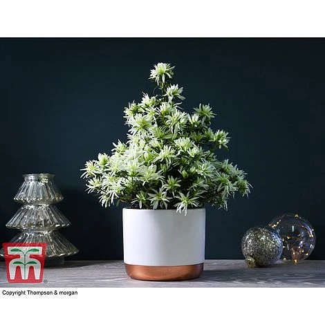 This charming Spider Azalea is full of festive cheer! Like a little Christmas tree with a white frosting of snow, the starry blooms gleam against its dark, evergreen foliage. Azalea Magisnow ‘Winter Beauty’ makes a delightful gift that will last for years. In winter its rounded buds burst open just in time for Christmas and last for several months. During summer it remains a shapely cone of glossy leaves that adds an exotic feel to the conservatory or even a patio table outdoors. This elegant plant will make an enchanting addition to your home!